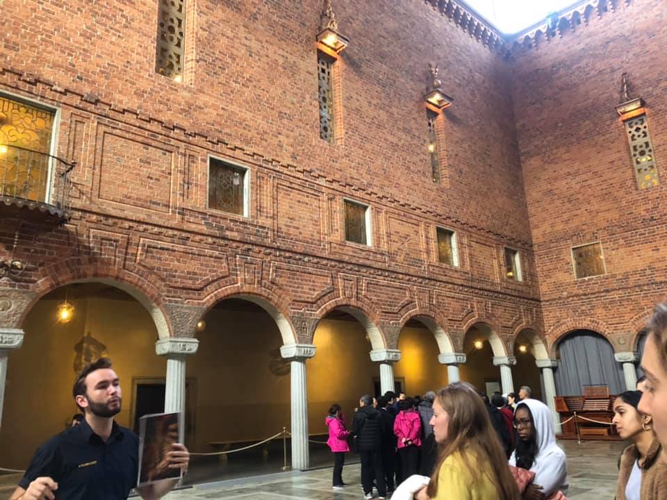 Last Wednesday, I had not one but two Field Studies, first to Stockholm City Hall and then to the art exhibits at the National Museum. A few of the Swedish Language and Culture classes, including mine, got a tour of the city hall, which is one of Stockholm’s most well-known landmarks and hosts the Nobel Prize banquet every year. It’s also home to some of the most interesting historical art I’ve seen here. I’m not always a fan of landmark tours, but I learned things that I never would have guessed otherwise.